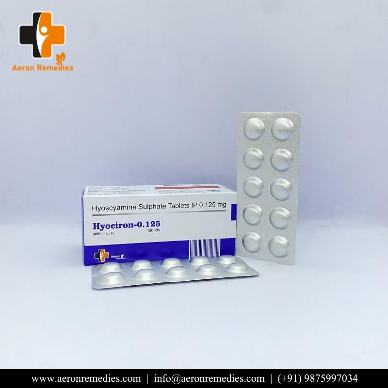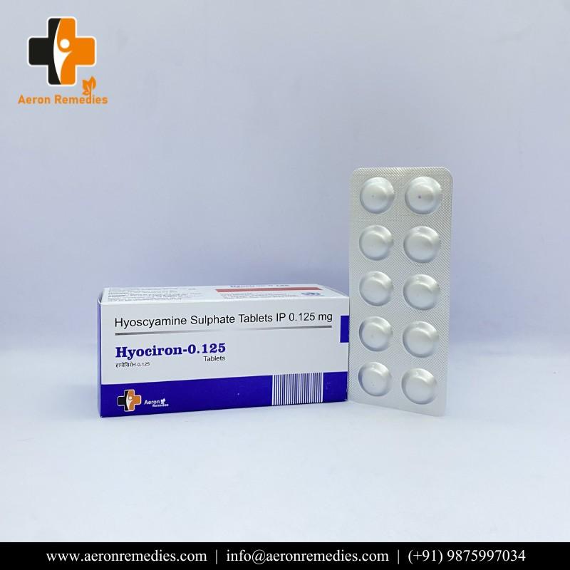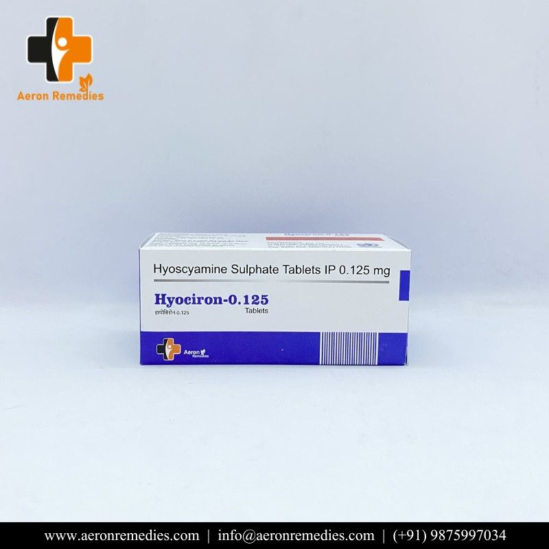 HYOCIRON 0.125 mg contains Hyoscyamine Sulphate used for gastrointestinal and urinary tract spasms. It helps reduce smooth muscle contractions and pain. Common indications include IBS, peptic spasms, and bladder discomfort. The medicine improves patient comfort and symptom control. Used under medical supervision.