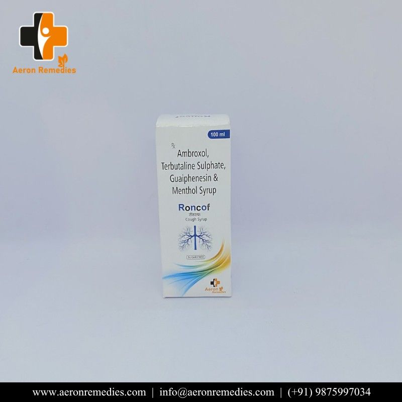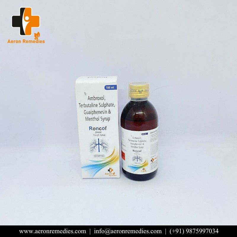 RONCOF is a cough and bronchial relief formulation. It helps loosen mucus, ease breathing, and reduce bronchospasm. Provides relief from productive cough and chest congestion. Suitable for respiratory tract conditions.