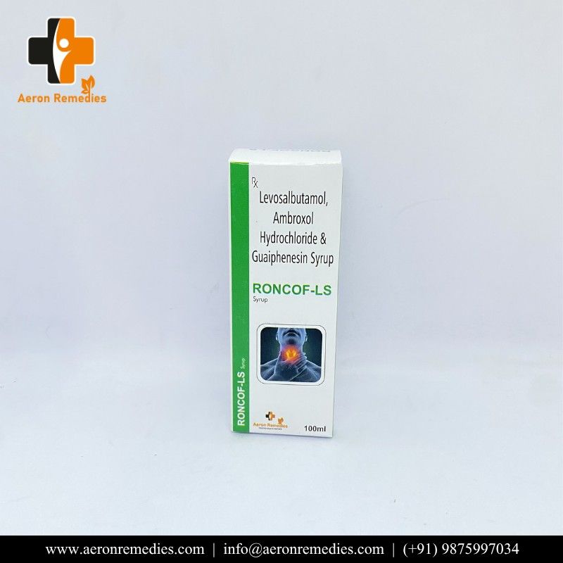 RONCOF-LS is a bronchodilator and mucolytic cough formulation. It helps loosen mucus, relieve bronchospasm, and improve airflow. Effective in productive cough, bronchitis, and asthma-related symptoms. Supports easier breathing and chest congestion relief.