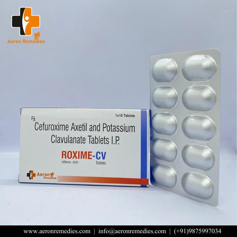 ROXIME-CV is a combination of Cefuroxime and Clavulanic Acid used for resistant bacterial infections. Cefuroxime provides antibacterial action, while Clavulanic Acid enhances effectiveness against resistant strains. It is commonly prescribed for respiratory and urinary tract infections. The formulation ensures broader coverage and improved outcomes. To be used under medical supervision.